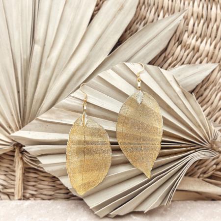 Unsere Tiger Feather Ohrringe – Federschmuck in used-gold Look Fassung aus unserer Festiva Kollektion.